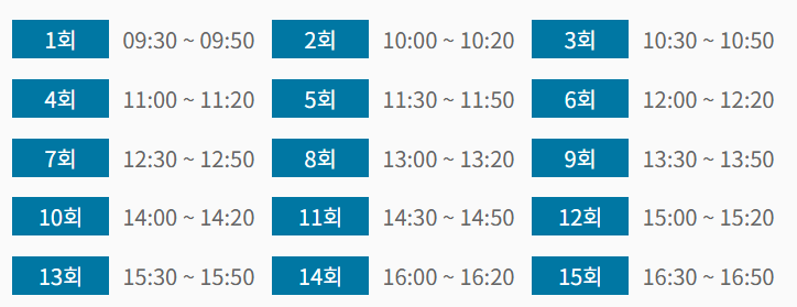 관람시간:오전 9시부터 오후 6시까지(매표는 관람시간 종료 1시간 전까지)