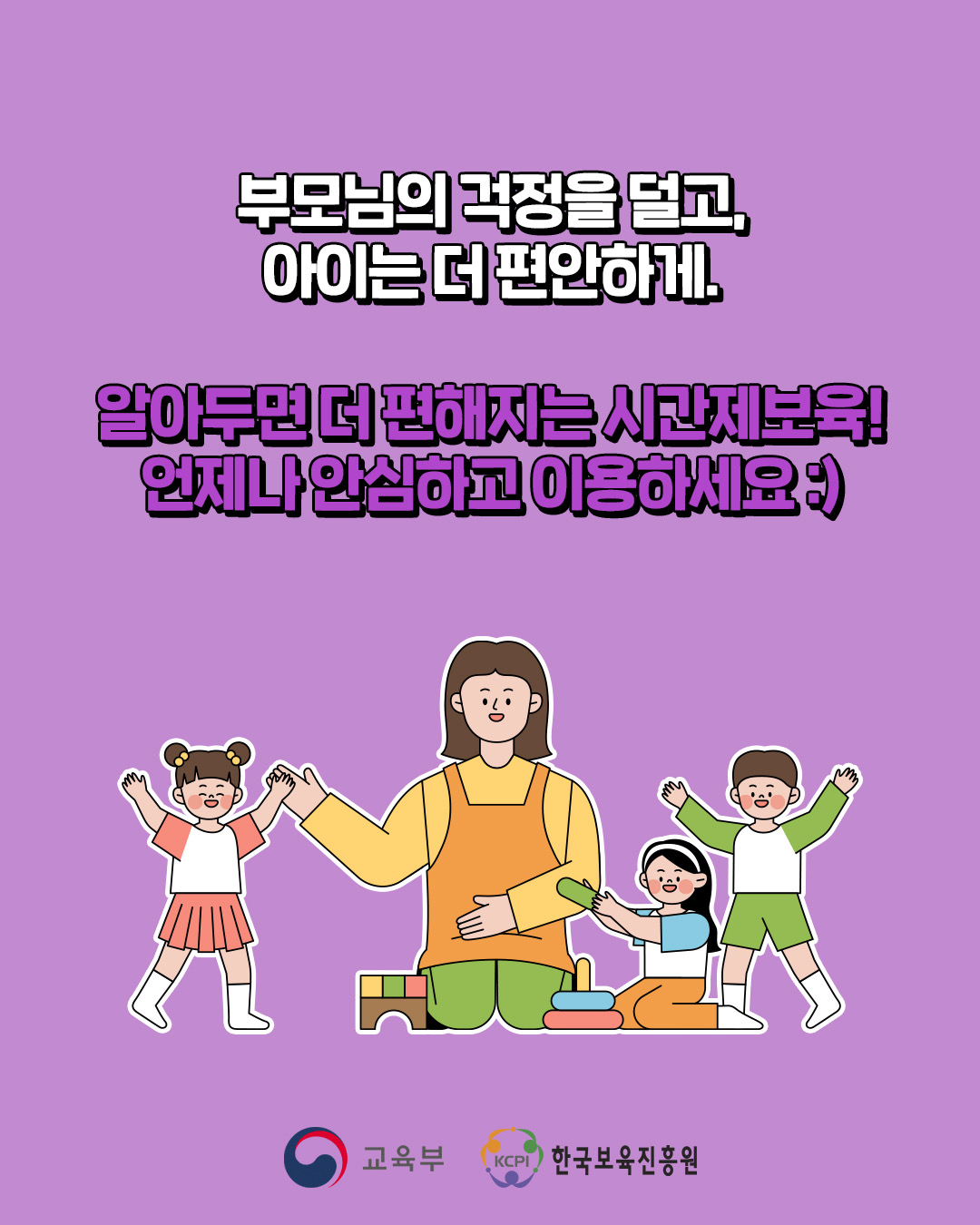 지정된 기관에서 시간 단위로 아이를 맡길 수 있는 서비스이다.