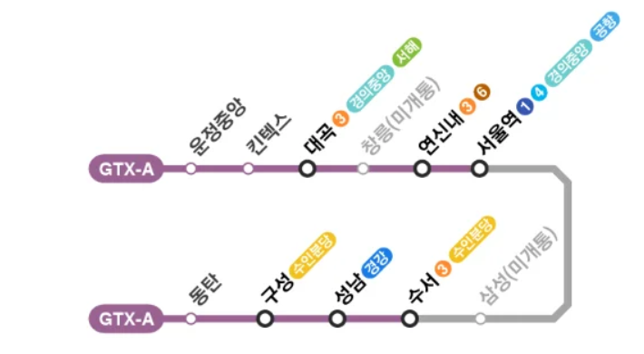 2024년 3월 30일에 개통한 GTX-A는